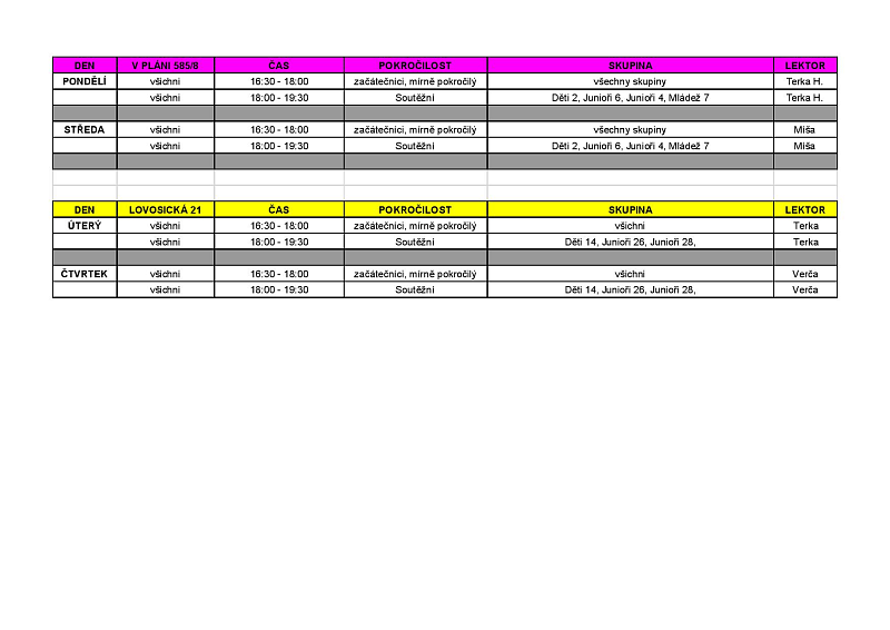 ROZVRH HODIN od září 2021