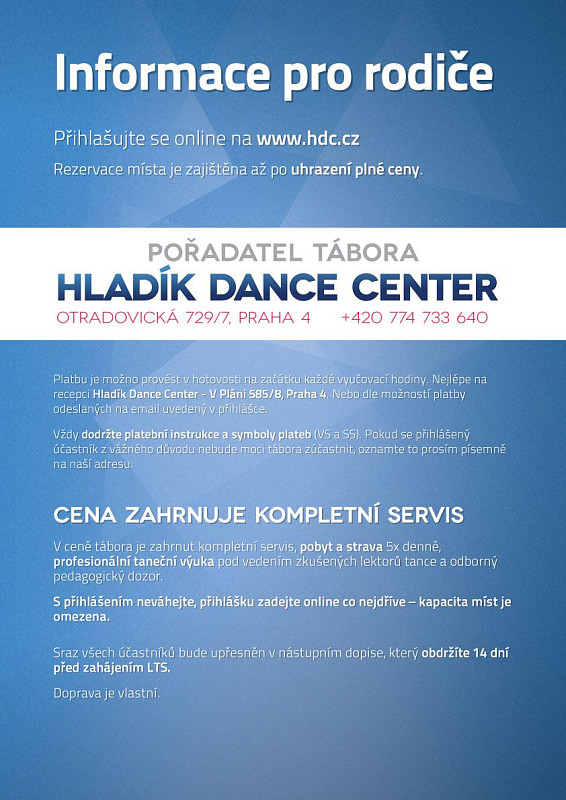 HLADÍK DANCE CENTER, z.s. Otradovická 729/7, Praha 4, 142 00, tel. 774 733 640.